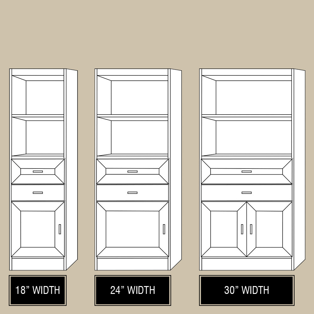 This beautiful side cabinet offers shelf space, one full extension drawer, a practical pull out nightstand, and a bottom door for hidden storage. Fully adjustable shelves allow you to accommodate different size objects. This cabinet comes standard with two shelves.
